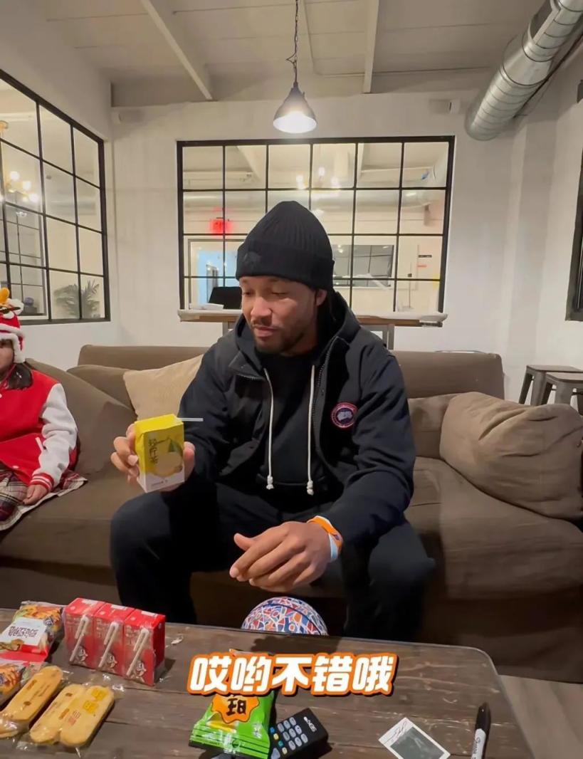 NBA球星布伦森吃中国特色零食 图源:澎湃新闻