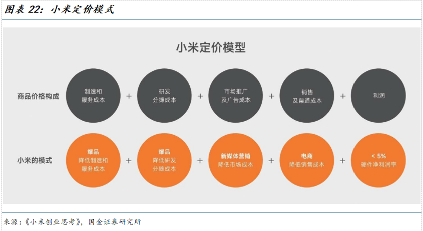 产品触达方面,小米“爆品模式”前瞻性满足消费者需求。雷军将“爆品”定义为符合大众需求的超预期产品,在开发期间将“明天属性”融入产品设计,最终推出能为消费者带来人人向往、代表趋势的崭新体验的“爆品”,实现超预期满足。