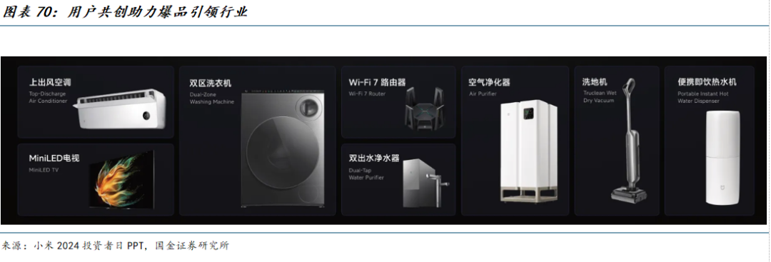 手机:软件方面MIUI系统通过论坛让用户直接参与功能投票,每周根据反馈迭代版本,硬件层面社群反向定义成为产品基线。例如小米13系列的“小屏旗舰”定位,源自社群中“单手操作需求”的高频呼声。小米手机面世3年发布5款手机,款款爆品。