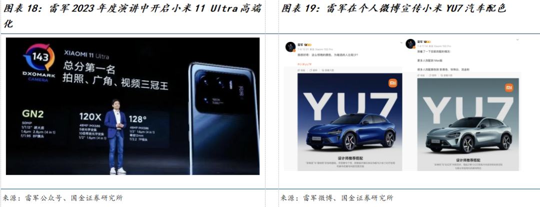 用户触达方面,小米“和用户交朋友”坚定群众路线,依托小米社区汇集用户反馈和诉求。同时雷军等管理层亲自运营个人微博,参与直播带货,并自2020年起连续举办年度演讲,直观且生动地传递产品功能价值与情感价值,成功塑造品牌。