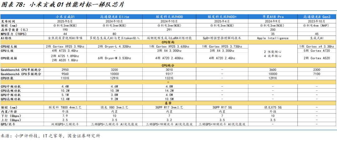 小米近年来在硬核技术领域的投入成果显著,尤其在芯片、智能汽车、AI、操作系统及智能制造等方面实现突破和展现强大技术实力。1)芯片方面,2025年小米玄戒O1发布,正式跻身全球高端芯片设计梯队,玄戒O1的成功量产,代表小米正式成为继苹果、高通、联发科之后,全球第四家拥有自主3nm制程手机SoC(System on a Chip)设计与商用能力的企业。2)智能汽车方面,超级电机V8s,转速达27200rpm,全球量产电机第一,已用于SU7 Ultra。3)智能制造上,小米汽车工厂北京亦庄工厂实现76秒/台的生产效率,700+机器人全自动化生产,未来计划全球布局20座智能工厂。4)AI与操作系统上,小米自主研发的跨设备操作系统澎湃OS(HyperOS)旨在构建“人车家全生态”智能互联体系,基于深度优化的Android底层(如Android 15/16),融合小米自研的HyperCore内核,涵盖性能、图形、网络、安全四大核心技术,提供流畅、高效、低功耗的体验,支持手机、汽车、家电等设备无缝互联。2025年将升级至澎湃OS 3,优化AI交互与跨设备协同。