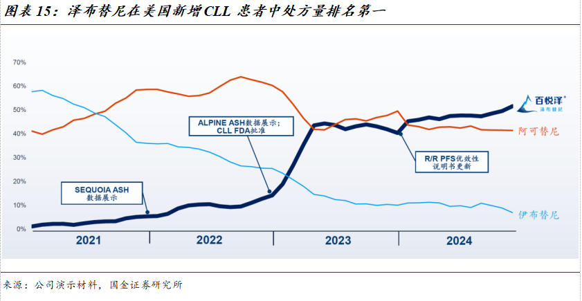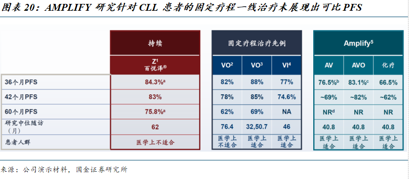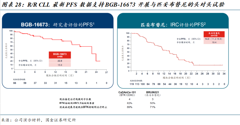 (1)从BTKi单药过渡到BTKi+BCL2i组合,百济神州相比竞品的数据优势进一步扩大,预计带来市占率提升: