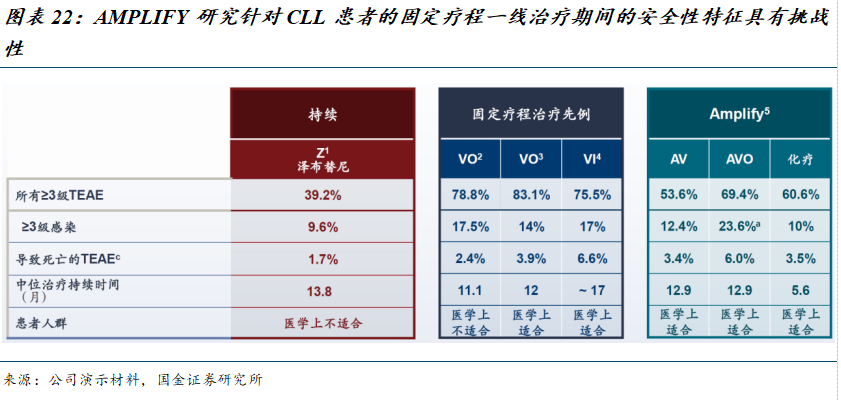 以维奈克拉为基础的现有BTKi+BCL2i疗法在一线CLL/SLL中的治疗表现欠佳。阿可替尼(A)+维奈克拉(V)±奥妥珠单抗(O)的固定疗程方案在AMPLIFY研究中展现出的有效性和安全性存在不足: