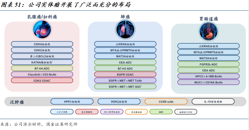 公司在实体瘤领域开展广泛探索,包含用于治疗多种疾病的多样化治疗模式与机制,考虑到技术平台和全球研发、临床团队的加持,看好公司后续在乳腺癌、肺癌、消化道肿瘤乃至慢病领域的技术突破。