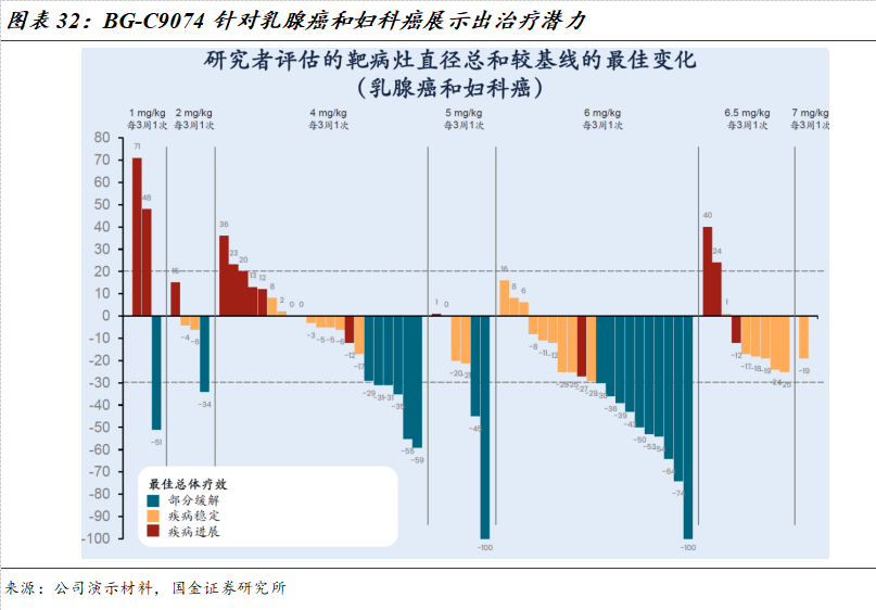 B7-H4 ADC:针对表达B7-H4肿瘤患者,具有同类首创潜力。B7-H4在乳腺肿瘤和妇科肿瘤中表达,而在正常组织中表达有限,公司与映恩生物合作开发的B7-H4 ADC BG-C9074展示出剂量依赖性体内药效、良好的内化能力及旁观者杀伤效应,有望成为针对乳腺癌、子宫内膜癌和卵巢癌的新治疗手段。公司预计BG-C9074将于2025年第三季度启动肿瘤特异性扩展队列入组。